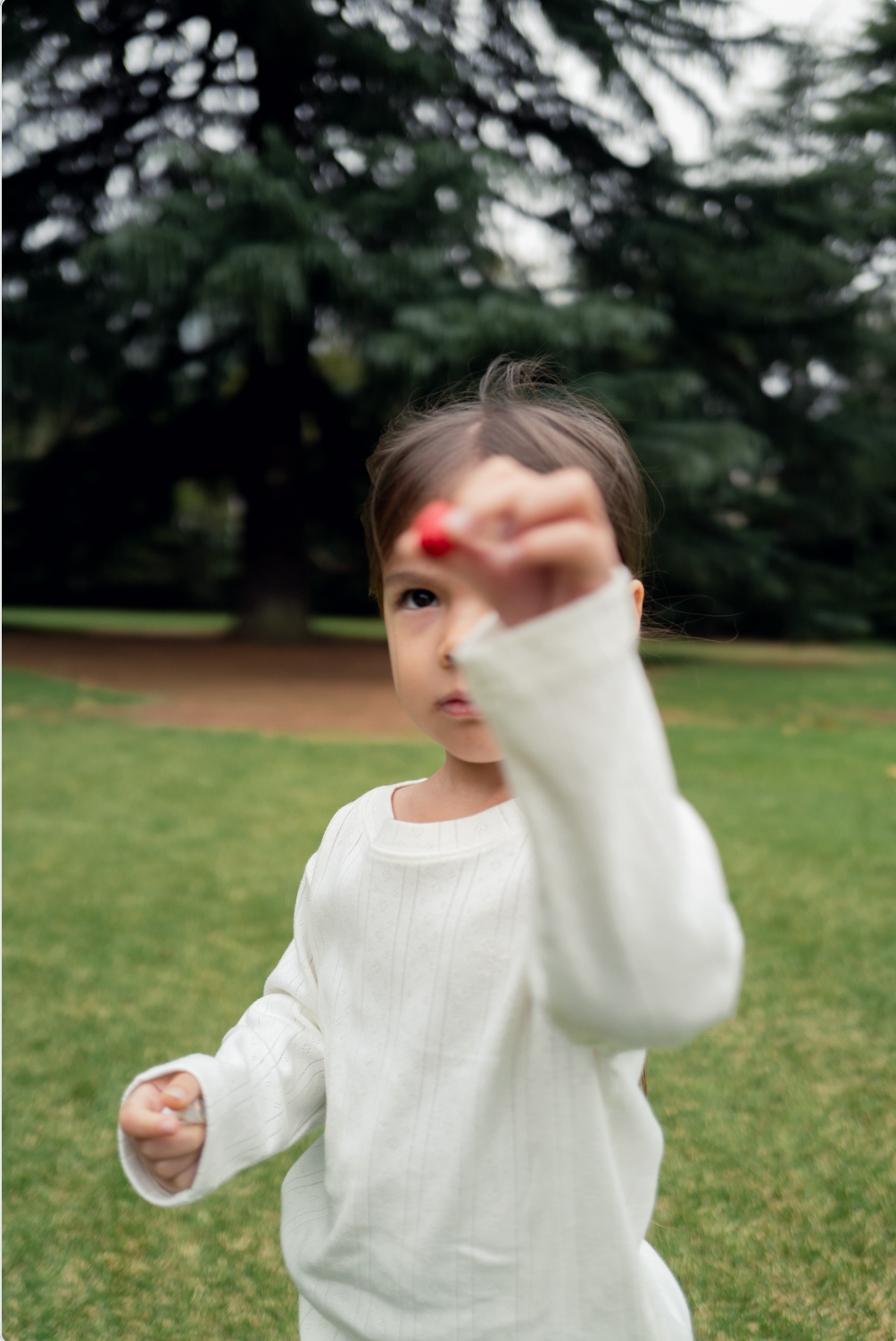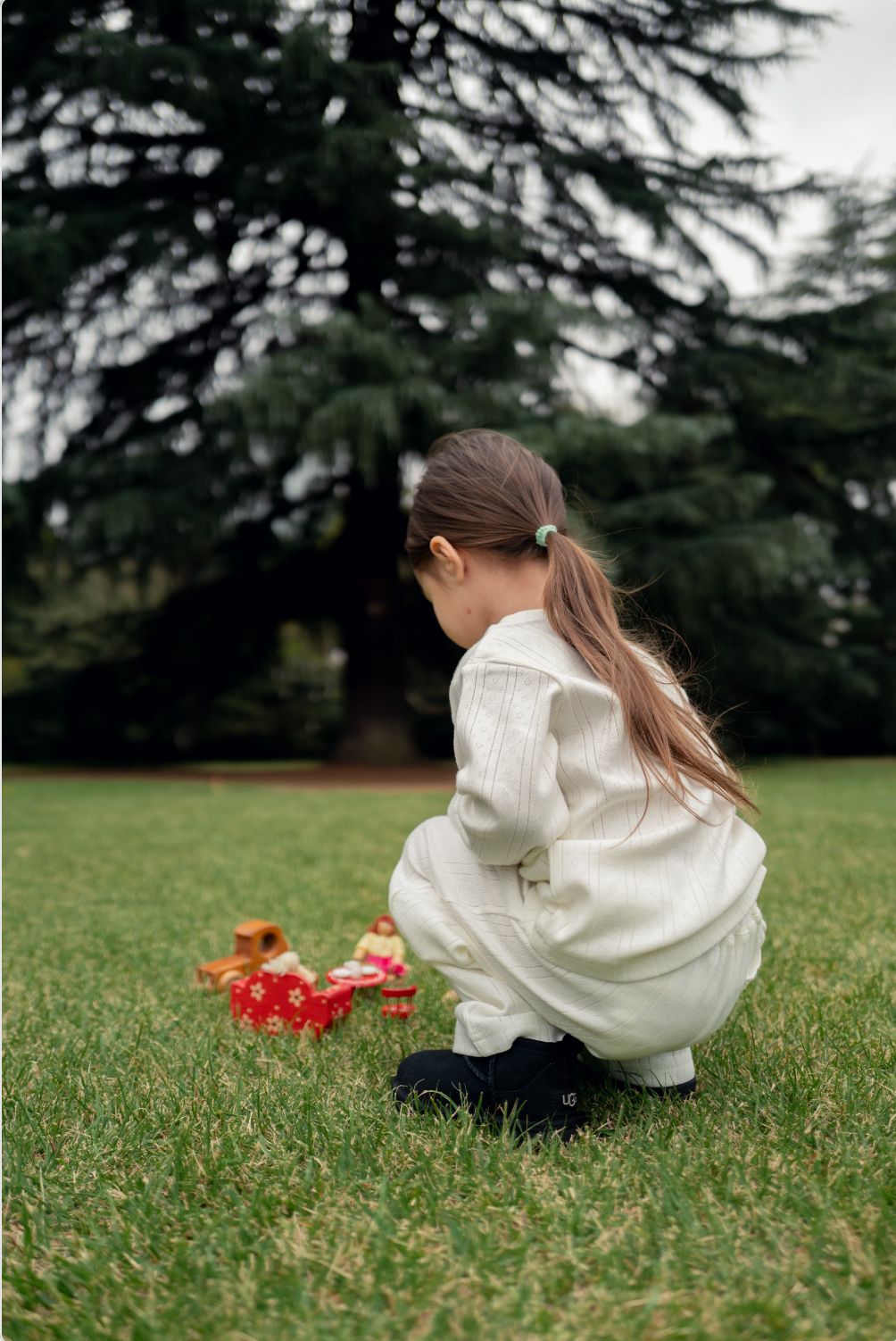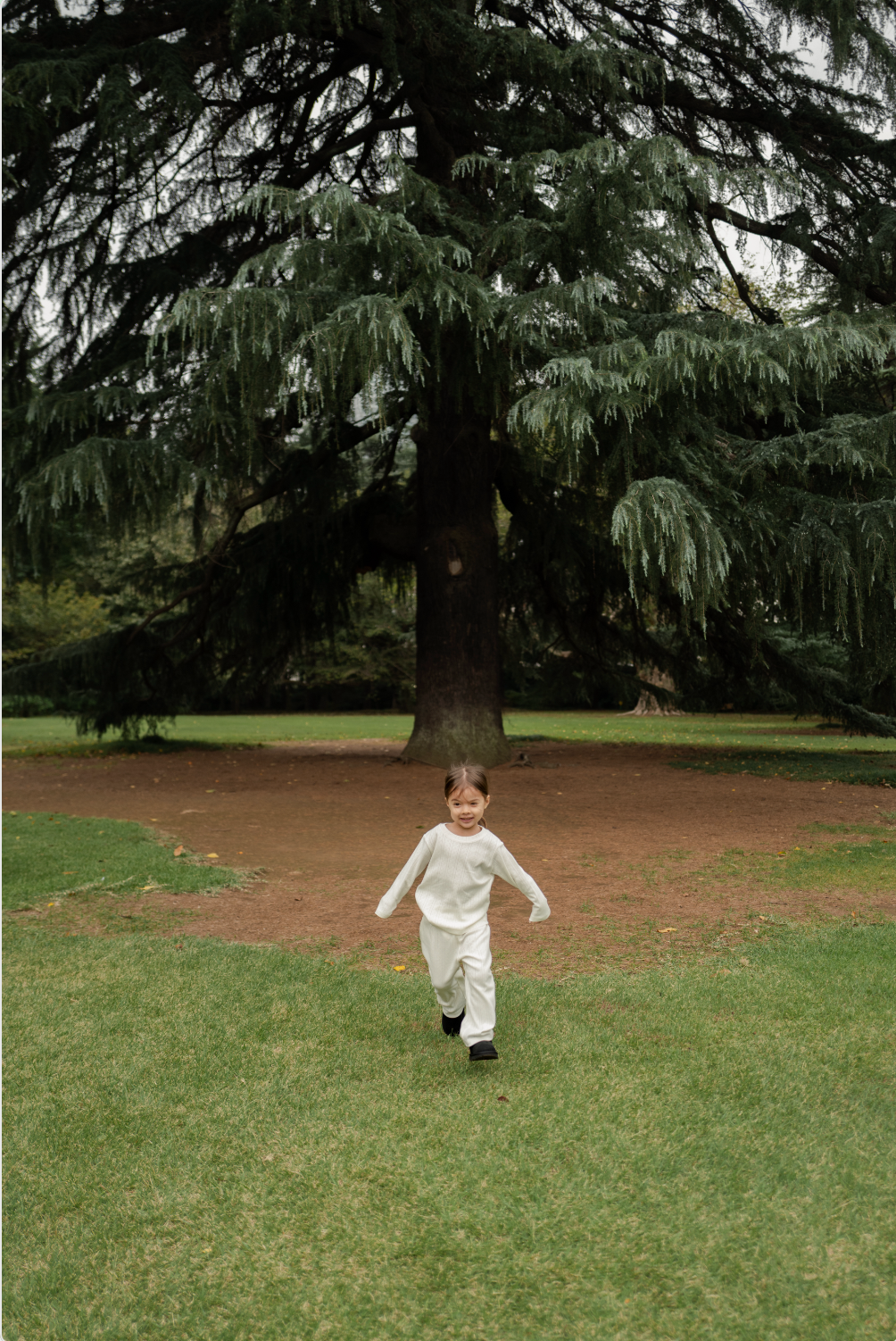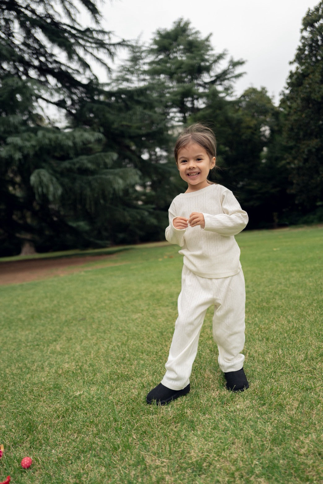 真っ白ではなく、生成りの白のセットアップ。子供に着せるのは少し勇気がいる色味ですが潔くおしゃれのために着せてみてください。とても可愛い自信作です。