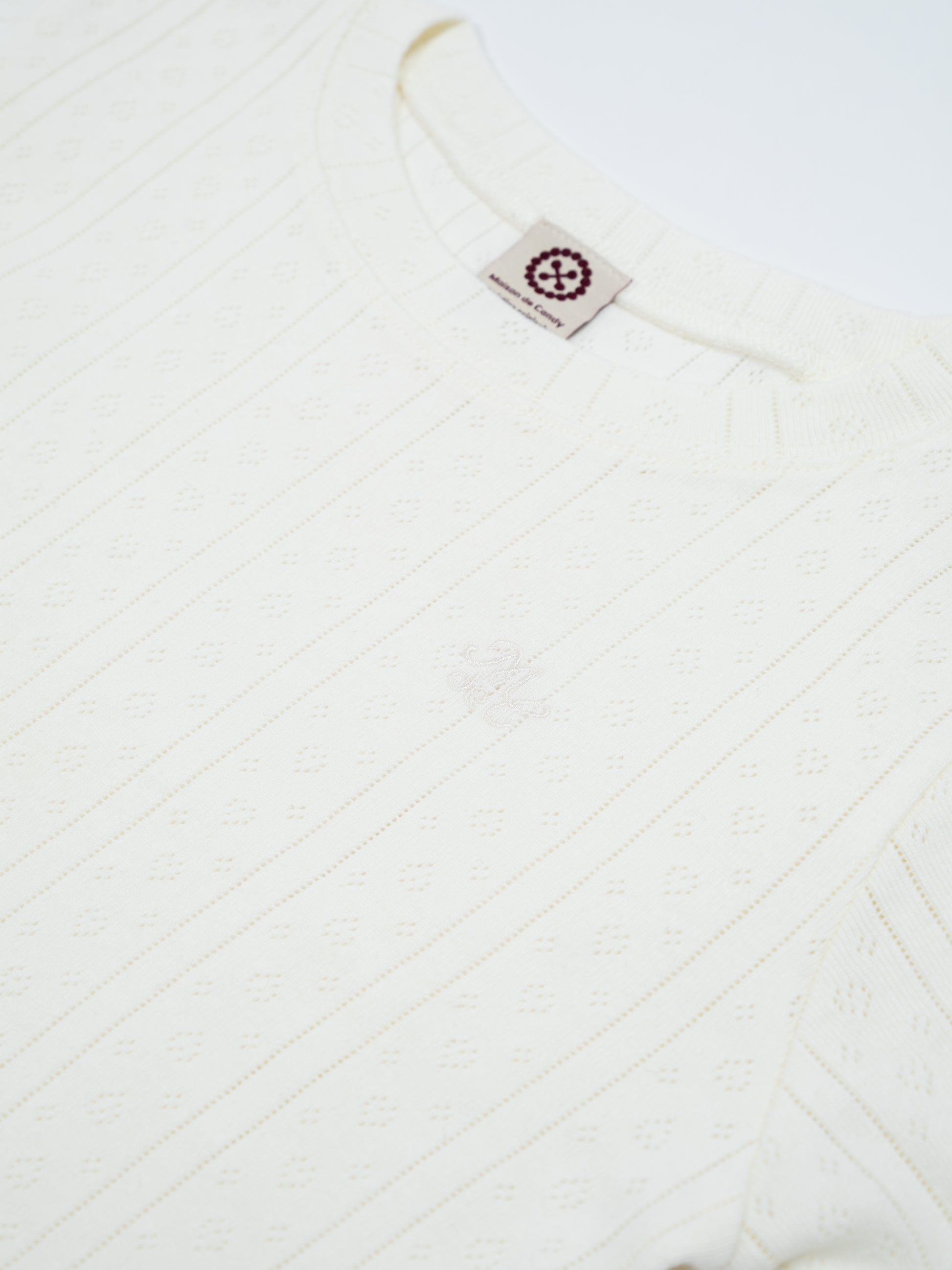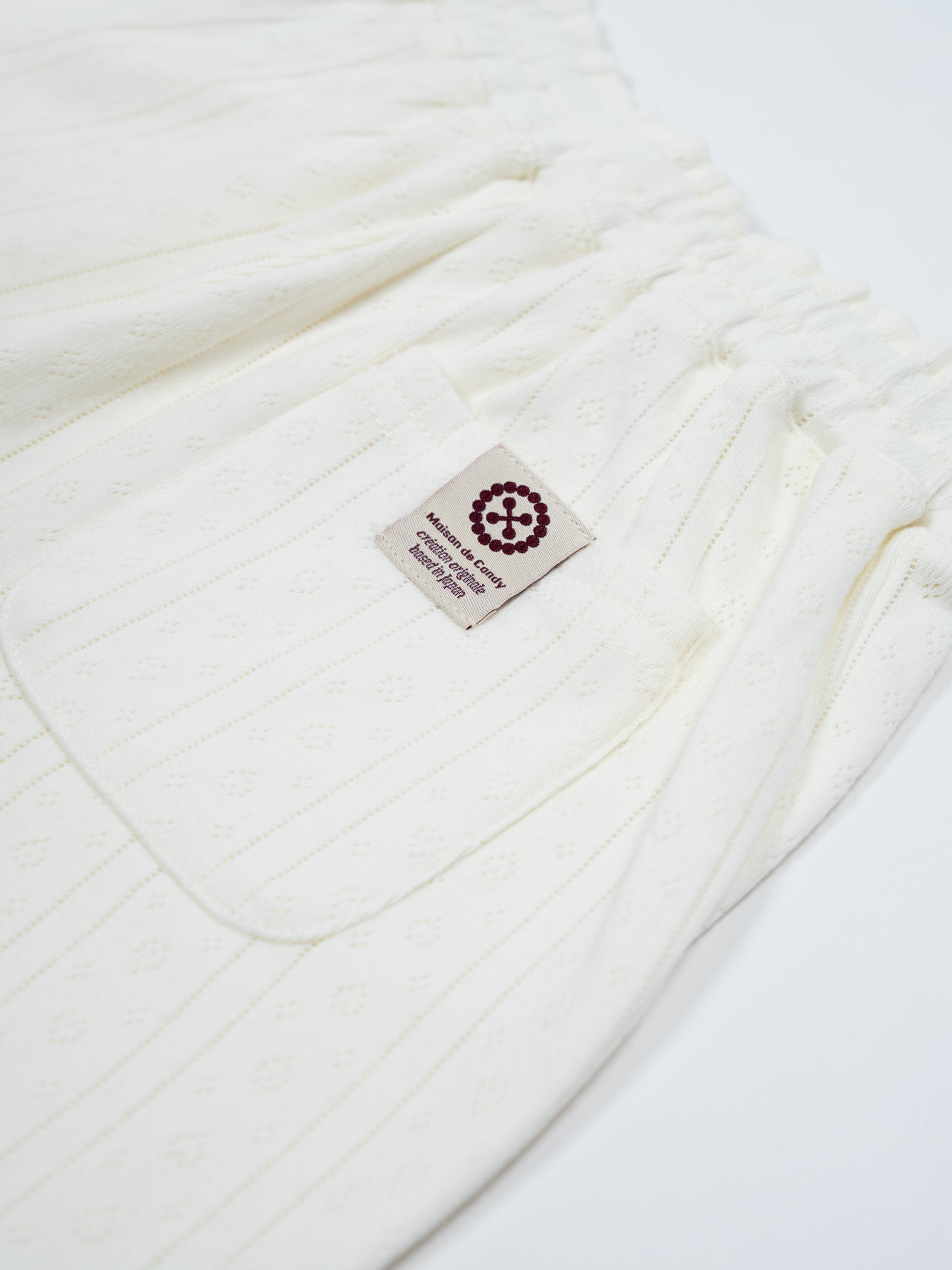春夏に発売したアイスブルーとブラックの秋冬バージョンで登場。eyelet生地という生地を使用しており、戦後の1940年代ごろの主にフランスにおいてベビー用品のインナーウェアに多く使われていたものを使用しています。