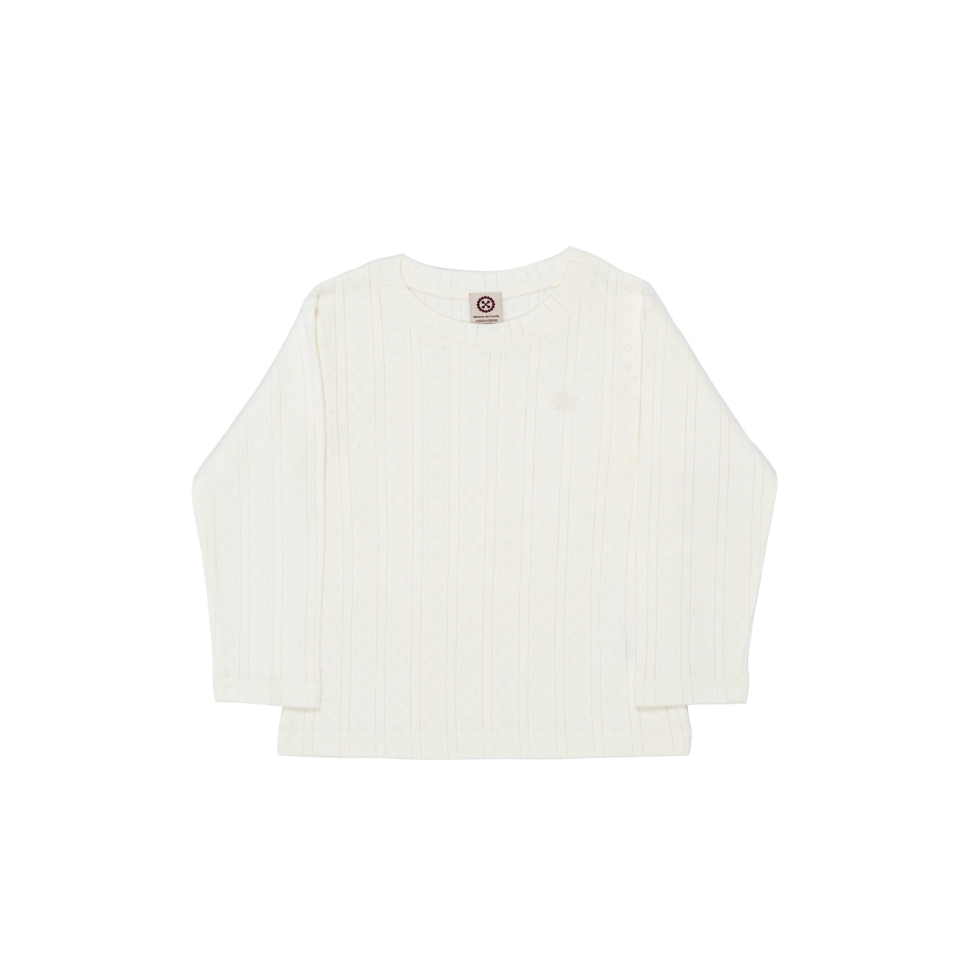 ヨーロッパの蚤の市に行くと、必ず目を引くこのeyelet生地。肌触りがよく通気性に優れているので、体温の高い子供にはぴったりの生地だと思い使用しています◎