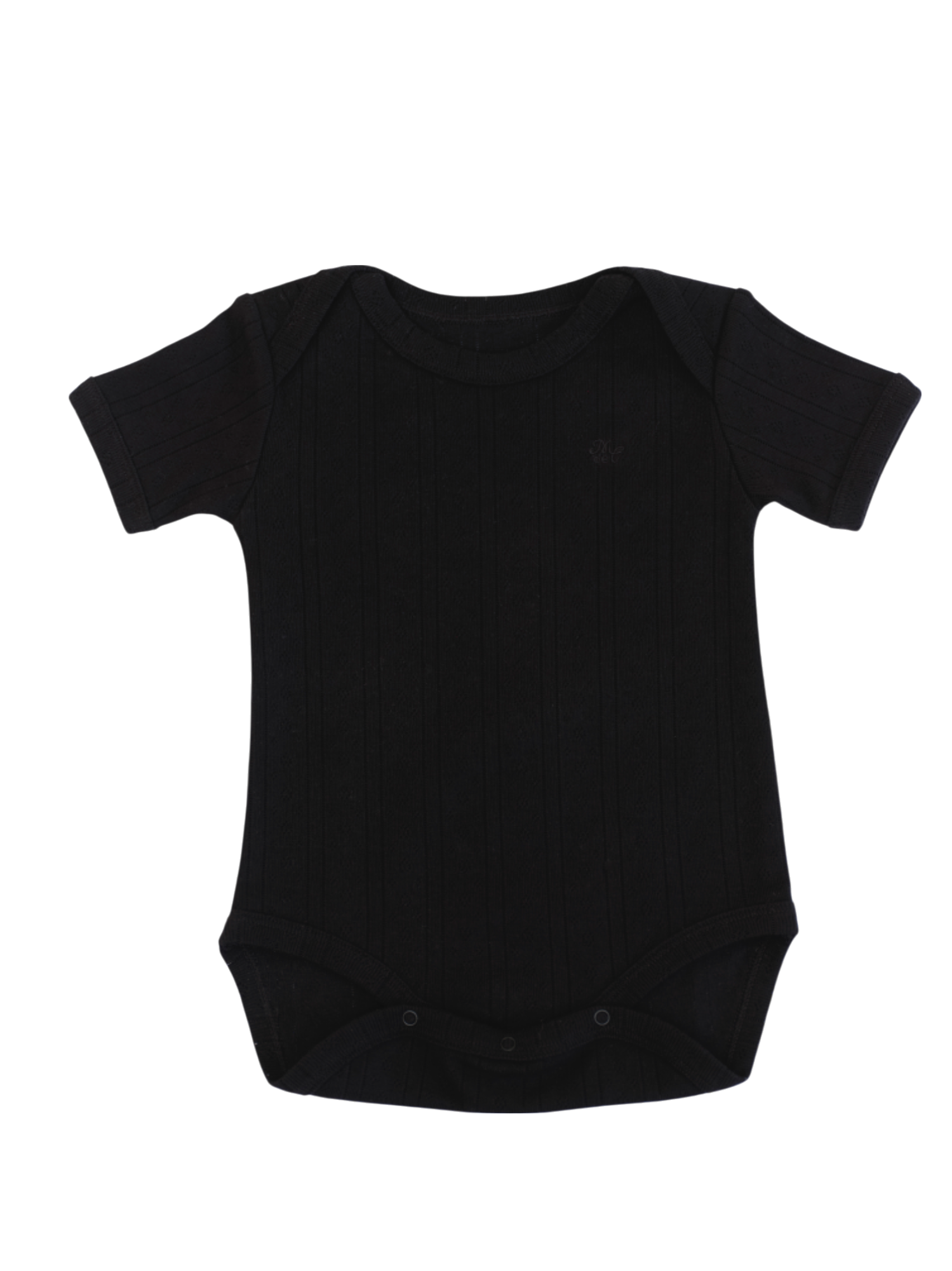 ・セット2:生地にこだわったシンプルな無地の2枚のロンパースBlack×Blueを組み合わせたセット