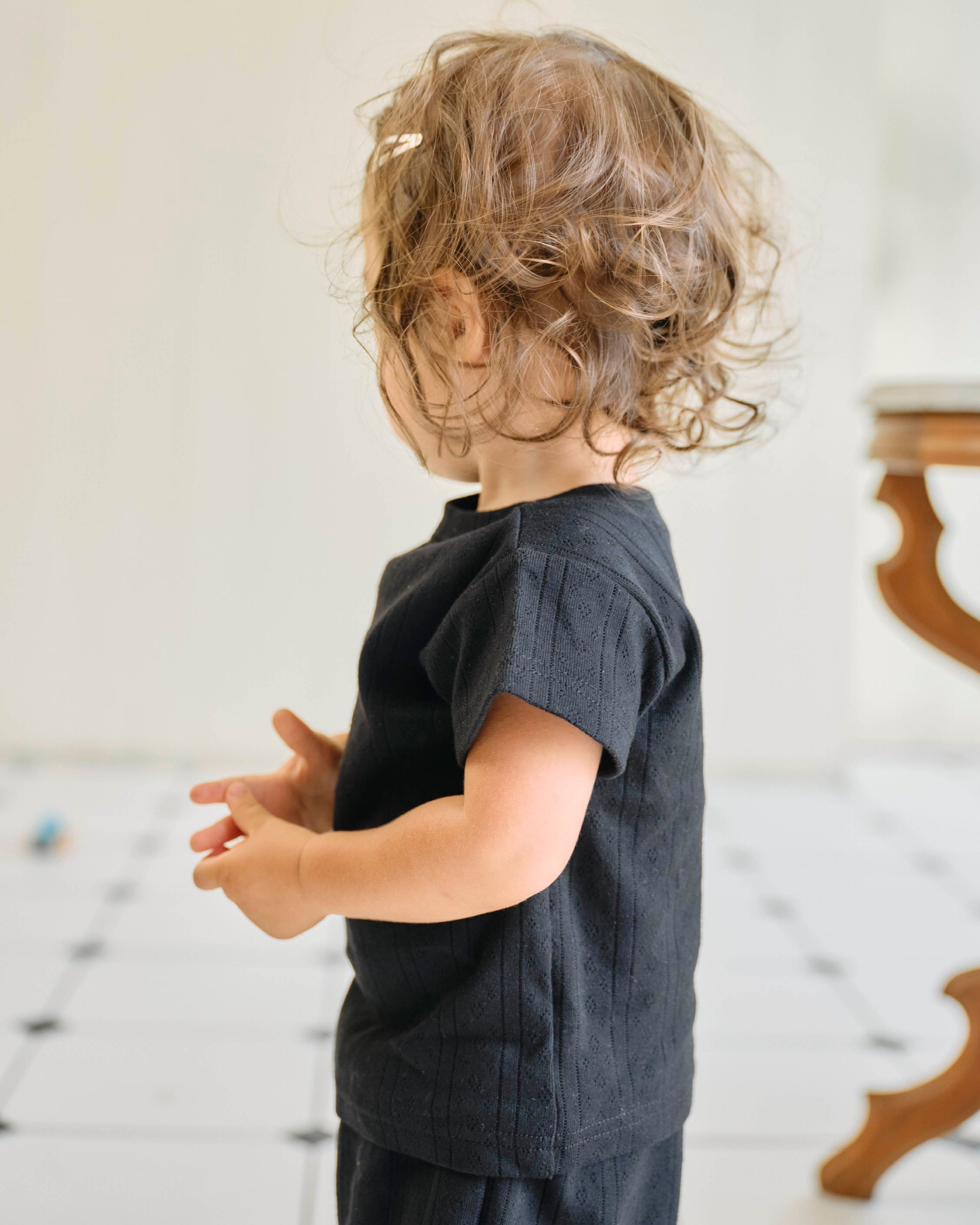 ママとお揃いで着れるシンプルなPARIS TEE。胸元にMaison de Candyの刺繍ロゴがあしらわれた何にでも合わせられるT- shirtsです。お出かけしてお着替えが必要な時とかにこんなお洒落なT-shirtsがあったら着替えさせるのも苦じゃない。