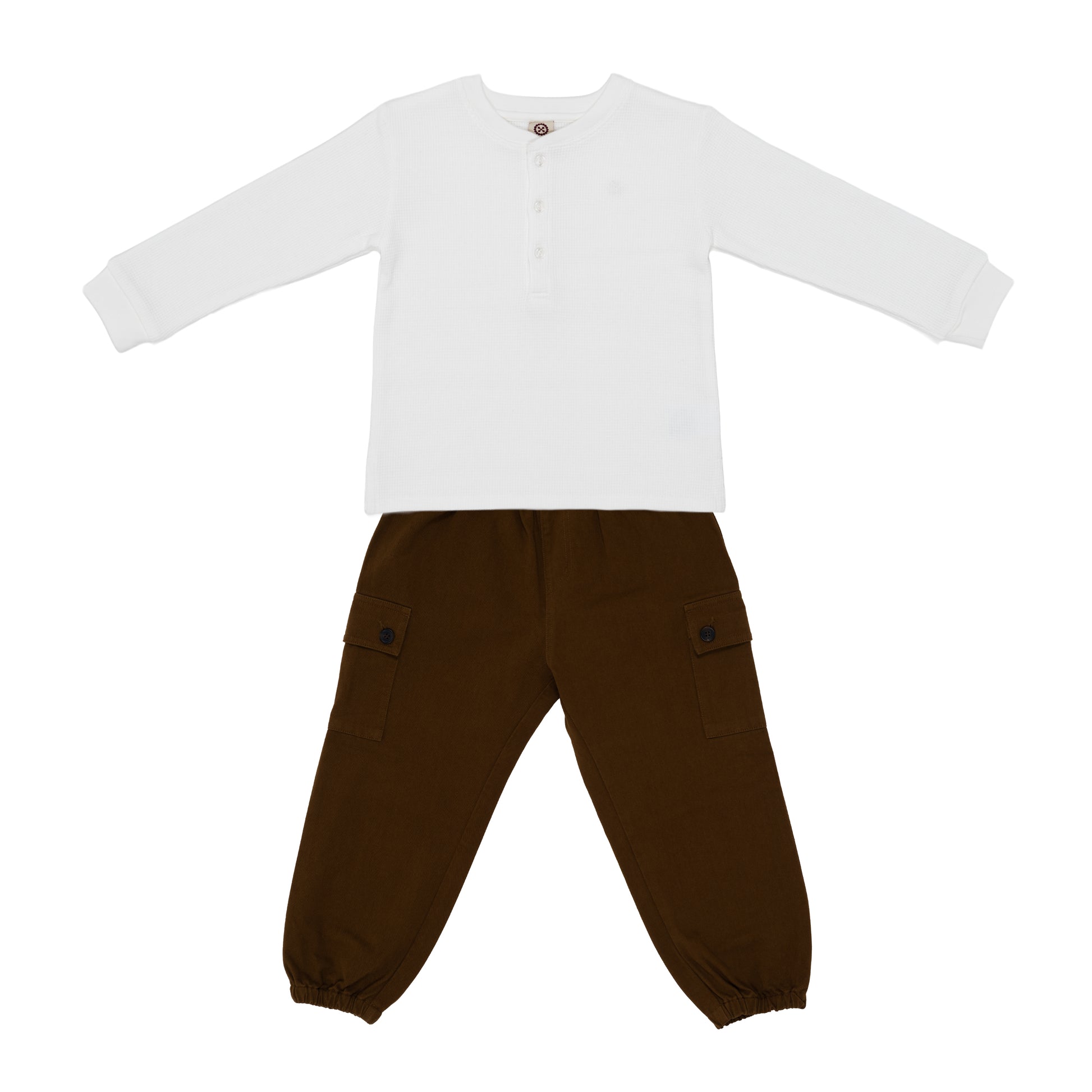 大人服をそのまま小さくした今回のシリーズは、洋服好きには堪らないラインナップになっていると思います。古着屋さんなどで簡単に手に入るミリタリーパンツとサーマルをパパやママも合わせてお揃いコーデを楽しんでもらうのもおすすめです。